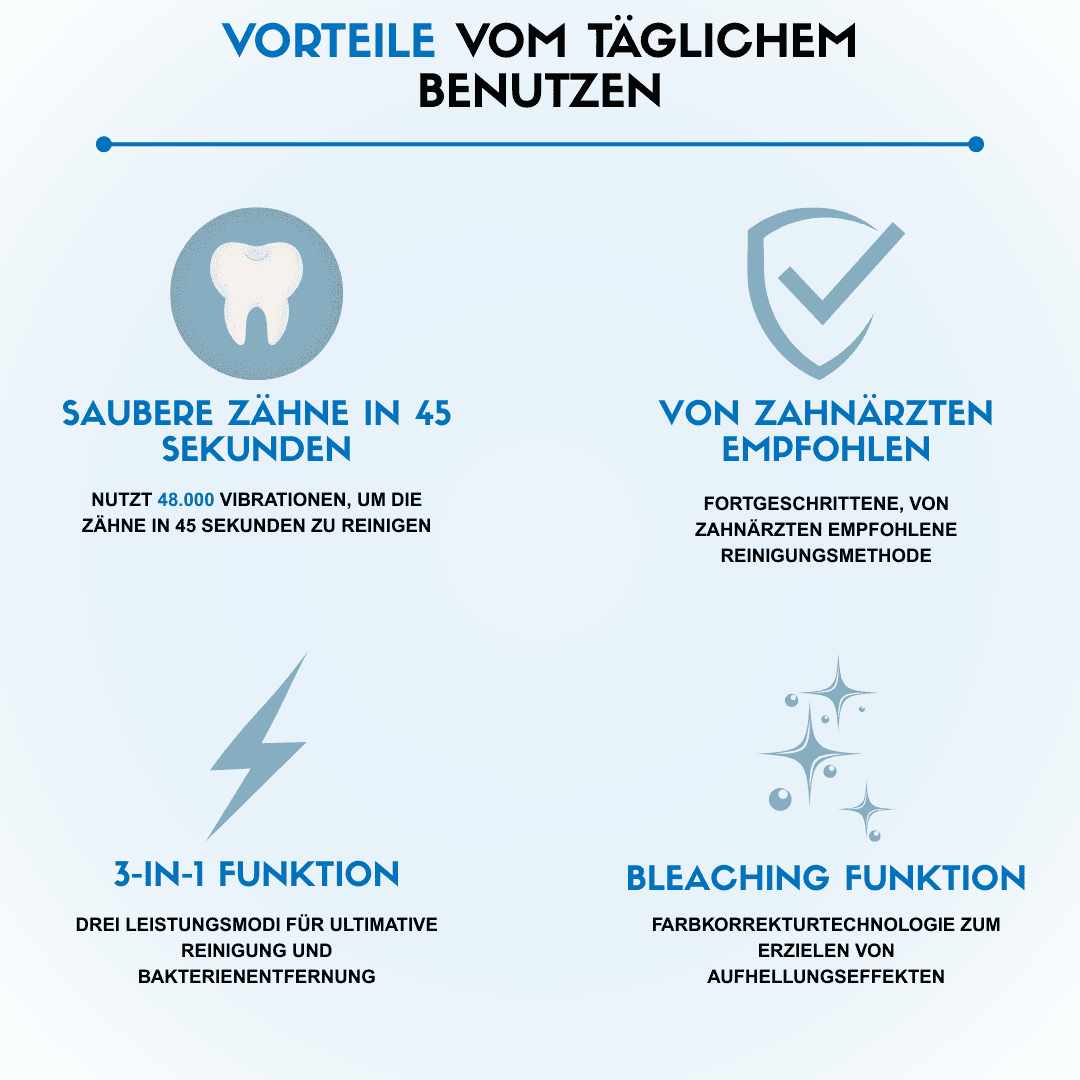 Bereits nacheinigen Tagenmerken 98 % unserer Nutzer einen Unterschied – die Zähne fühlen sich sauberer an und sehen sichtbar weißer aus.