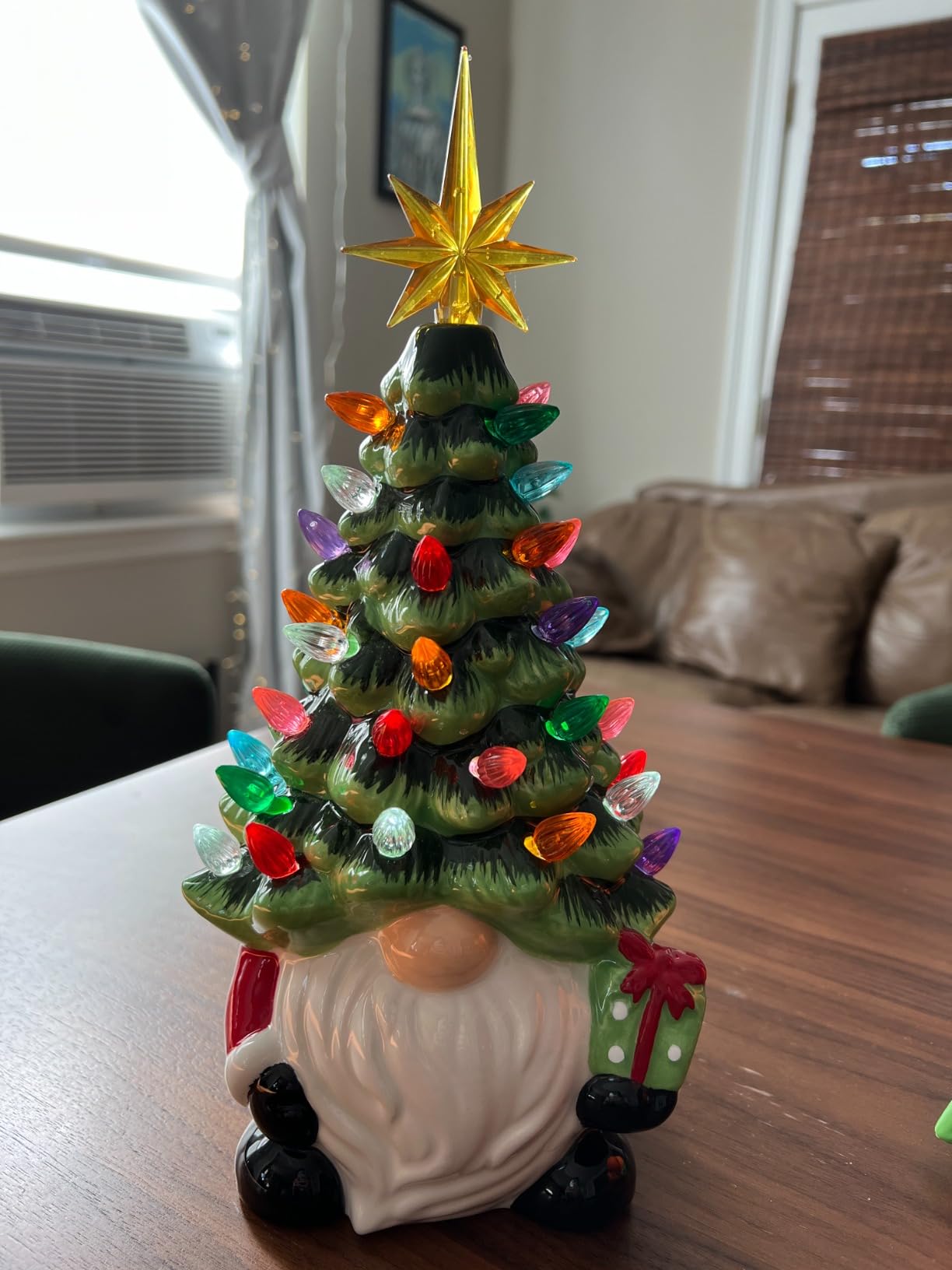 【Verschönern Sie Ihre Feiertage】Der Baum ist mit 32 bunten Lichtern und einem 7-zackigen Stern an der Spitze geschmückt, die den Hut eines niedlichen Gnoms darstellen!