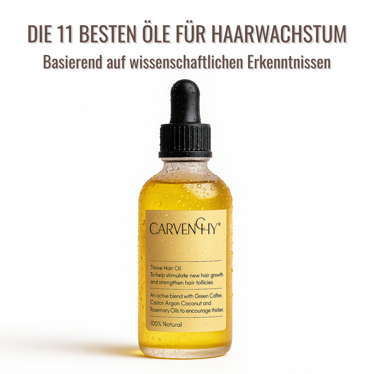 Rizinusöl (Castor), Pfefferminzöl (Peppermint Leaf), Rapsöl (Canola), Rosmarinöl, Kokosöl, Macadamiaöl, Grünteeöl, Ingweröl, Grünkaffeeöl, Arganöl, Biotin.